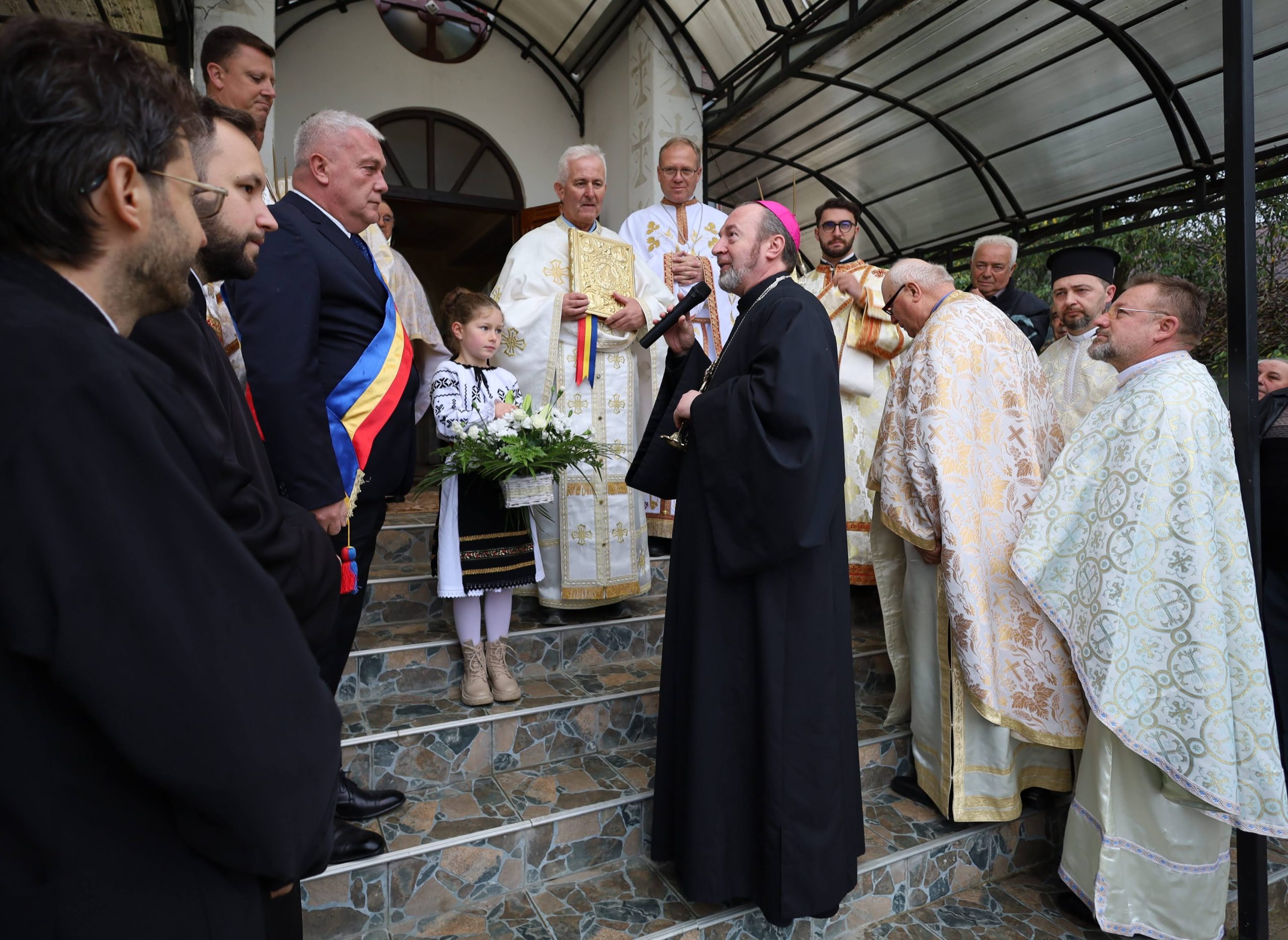 Duminică, 5 octombrie 2025, Preasfinția Sa Claudiu, Episcopul de Cluj-Gherla a vizitat parohia „Nașterea Maicii Domnului”, din loc. Țentea, jud. Bistrița-Năsăud. Ierarhul a poposit în această regiune frumoasă, bogată în păduri acum învăluite în culorile toamnei, într-o zi ploioasă, dar plină de lumina sărbătorii. A fost primit cu bucurie și emoție, în mod tradițional, la intrarea în biserică, de pr. paroh Vasile Sabo, de pr. protopop Cristian Goia, de primarul comunei, de ceilalți preoți prezenți, persoane consacrate, credincioși, de copii care i-au oferit flori și i-au recitat versuri de întâmpinare. Răspunzând salutului de bun venit al pr. paroh, Păstorul Eparhiei de Cluj-Gherla a răspuns că a venit în primul rând să întâlnească oamenii, pentru că știe că acest loc este un loc binecuvântat, „prin lucrurile pe care nu le vedem: există multă credință, multă jertfă, multă suferință poate, care aduce darul lui Dumnezeu nu doar pentru noi, ci și pentru ceilalți”. Și a arătat scopul acestei vizite pastorale: „să ne aducem aminte cu toții de darul lui Dumnezeu, care revarsă darurile Sale nu doar peste noi, ci peste toți oamenii”.